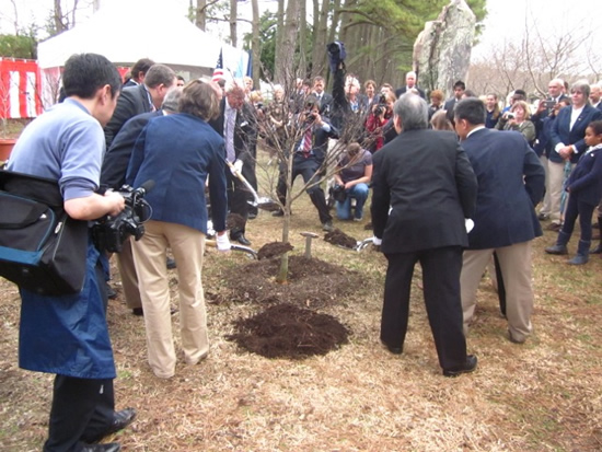 Pinetum al acto de conmemoración de los 111 años de la llegada de los Budo a Inglaterra, así pues se plantaron en un largo paseo 111 cerezos.