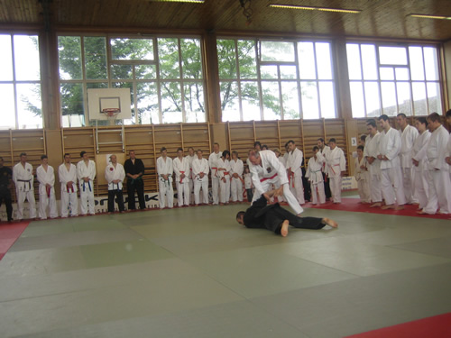 Maestro Jesús Potrero. A lo largo de los días del Budo Camp se fueron realizando un variado abanico de Waza (técnicas) fruto del amplio cuadro de Maestros y de sus diversos Budo. En lo que a mi respecta desarrollé diversos Renraku Waza - Kansetsu Waza - Renko Ho (combinación de técnicas de controles y conducciones) y trabajo sobre las Waza Te Gatame - Kote Hineri y Shiho Nage, una variedad amplia de Waza. Como acompañamiento a las clases se realizaron unas sesiones de proyección de dvd: El camino del guerrero (viaje a través de los Budo) y los técnicos Kata Judo y kata Ju Jutsu. Asimismo, se realizaron diversas demostraciones de Budo a cargo de los Maestros asistentes, cerrándose el evento con la correspondiente entrega de diplomas y distinciones a los Maestros. Después de esta grata experiencia, lo siento por los que no pudieron asistir, quedamos emplazados para Julio 2009 en Wieselburg (Austria) para realizar una nueva edición de este Budo Camp.
