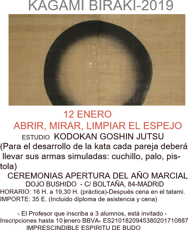 - acto habitual en los Dojo del mundo con una tradición de siglos atrás e instaurado en nuestra época actual por el O Sensei Jigoro Kano. En él los participantes borran de sus mentes lo marcialmente negativo del año ya