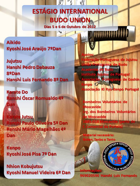 Do y los Sensei Felipe Moreira y Mónica Carla Couto maestros de Ko Budo . En el Stage se impartieron por parte del Kyoshi Dabauza técnicas de Renraku Waza (encadenamiento de controles), técnicas Ju Waza (técnicas suaves) y Bo Waza No Kata-2 Kyo (formas de técnicas de defensa a palo -2 grupo), por parte del Sensei Luis Fernando técnicas de defensa a armas y trabajo en suelo. El Sensei Víctor Pereira, fundador de Art Do (método de técnicas de origen coreano) y responsable del departamento de seguridad en la I.B.U., trato sus enseñanzas en defensas varias a manos libres y amenaza de pistola. El. Ko Budo estuvo impartido por los Sensei L. Felipe Moreira y Mónica Carla Couto que desarrollaron un trabajo de Do con manejo y defensas con el arma. Al Stage internacional asistieron maestros de relevancia como Antonio Enjuto 6° dan de Ju Jutsu, Jose L. Barbat 6° dan de Judo, Antonio Montes 6° dan de Taekwondo, Jesús Roca 5° dan de Taekwondo y Gabriel Villanueva maestro de Kali.