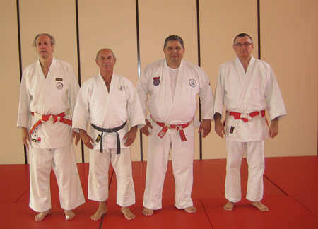![]() Al mismo asistieron Maestros de diversas Artes como el Hanshi Luis Fernando - 8ºDan de Ju Jutsu, Sensei Bannister-7º Dan de Judo y un nutrido número de budoka. El Seminario - Aniversario impartido por Hanshi Dabauza trató sobre el desarrollo de Seiryoku Zenyo Kokumin Taiiku no Kata en sus grupos Tandoku Renshu (trabajo individual) y Sotai Renshu (trabajo con compañero), estas formas que están presentes en Kodokan Judo rara vez se enseñan y menos en su forma de Kata. El Kyoshi Araujo mostró