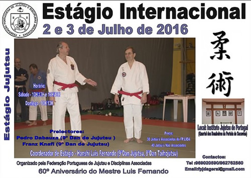 Para la celebración del 60 aniversario del Maestro Luis Fernando asistimos al evento anual que se celebra en Lisboa. En esta ocasión los responsables de la enseñanza fueron Pedro R. Dabauza Hanshi 9ºDan Ju Jutsu (España) y Hanshi Peter Schillinger 9ºDan Ju Jutsu (Austria). Durante el Estagio por parte de Hanshi Dabauza se desarrolló el estudio de la Kata Ki Hon Waza Ken no Kata y por parte de Hanshi Schillinger estudio de puntos vitales del cuerpo.