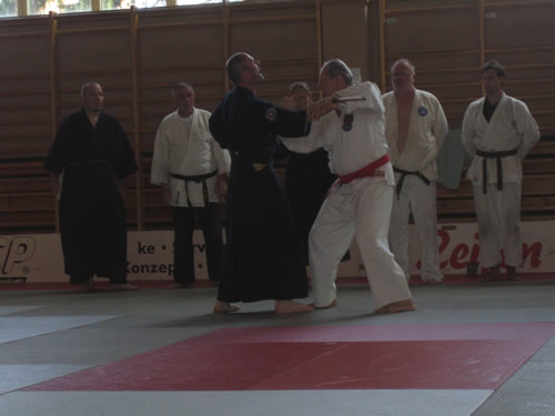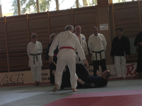 Maestro Jesús Potrero. A lo largo de los días del Budo Camp se fueron realizando un variado abanico de Waza (técnicas) fruto del amplio cuadro de Maestros y de sus diversos Budo. En lo que a mi respecta desarrollé diversos Renraku Waza - Kansetsu Waza - Renko Ho (combinación de técnicas de controles y conducciones) y trabajo sobre las Waza Te Gatame - Kote Hineri y Shiho Nage, una variedad amplia de Waza. Como acompañamiento a las clases se realizaron unas sesiones de proyección de dvd: El camino del guerrero (viaje a través de los Budo) y los técnicos Kata Judo y kata Ju Jutsu. Asimismo, se realizaron diversas demostraciones de Budo a cargo de los Maestros asistentes, cerrándose el evento con la correspondiente entrega de diplomas y distinciones a los Maestros. Después de esta grata experiencia, lo siento por los que no pudieron asistir, quedamos emplazados para Julio 2009 en Wieselburg (Austria) para realizar una nueva edición de este Budo Camp.