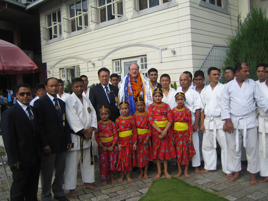 Tierras lejanas pero hospitalarias donde las tradiciones, la vida y la naturaleza son apabullantes. Con gran entusiasmo esperaban los Budoka de Nepal mi llegada. Primero recibiéndome a lo nepalí con la puesta de collares y pañuelos en el aeropuerto. Acto que se repitió a la llegada al centro donde se impartiría el seminario, todos debidamente formados quisieron mostrar su gratitud otorgando el pañuelo de bienvenida.