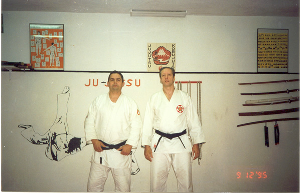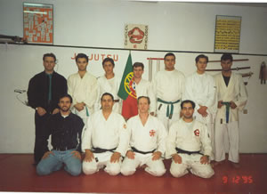 David Moronta. A través de este artículo y de la revista Cinturón Negro, que siempre nos ha apoyado, queremos extender a los directivos de la Federación Portuguesa de Jin Jitsu, en especial al Maestro Luis Fernando, a todos los Maestros, Profesores y artistas marciales asistentes, nuestro agradecimiento por la atención esmerada y sobre todo por el espíritu de amistad, de colaboración, de reconocimiento y respeto mutuo en que se desarrolló tan importante evento. Publicado en la revista Cinturón Negro, Enero 2001 Seminario Arbitraje de Ju Jitsu en Lisboa (Portugal) 1995 Ante la invitación de la Federación Portuguesa de Ju Jitsu y D.A. y por medio de su director técnico el Maestro Luis Fernando, el Maestro Pedro R. Dabauza 5ºDan Ju Ju Jitsu, Árbitro Mundial y 5ºDan de Judo impartió un seminario sobre las reglas de arbitraje en sus modalidades de lucha y Duo Kata. Este seminario era una primicia en Portugal y los asistentes vieron desarrollar los artículos del reglamento acompañados de prácticas del mismo. A su vez y aprovechando la asistencia del Maestro Dabauza, se desarrolló una clase sobre técnicas en pie y en suelo. En dicho seminario reinó una gran armonía entre profesor, organización y alumnos, auspicio de futuras iniciativas de Budo.