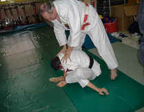 Para terminar este primer día de curso, Kyoshi Dabauza nos demostró con ayuda de su uke David Moronta, el verdadero significado de lo que es hacer un nudo humano descubriendo a su vez la flexibilidad que David posee.